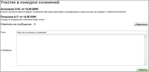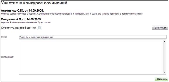 , находящуюся под таблицей со списком сообщений (рисунок 17). В результате в рабочем пространстве страницы будет загружена специальная форма для создания и отправки сообщения (рисунок 20).