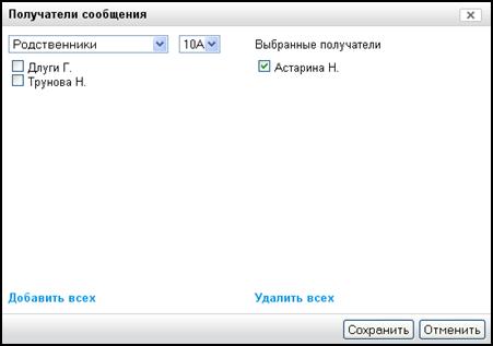 Рисунок 21 – Выбор получателей сообщения