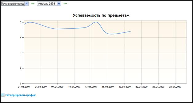 При выборе другого учебного периода, в котором оценки были проставлены, появляется графическое представление успеваемости ученика. Так, на рисунке 27 такой график отображен для успеваемости ученика за апрель месяц 2009 года.