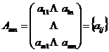- элемент матрицы; i-номер строки; i=1,…,m; j-номер столбца, j=1,…,n; m, n – порядки матрицы. При m=n