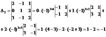 =2·3·1+1·(-2)·1+3·1·(-1)-1·3·(-1)-3·1·1-2·1·(-2)=5.