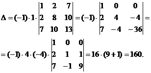 4). Вычисление с использованием теоремы Лапласа, согласно которой определитель