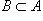 означает, что элемент a не принадлежит множеству A. Множество B, все элементы которого принадлежат множеству A, называется подмножеством множества A, и при этом записывают ![]()