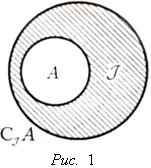 , то множество ℐ элементов множества А, не принадлежащих A, называется дополнением множества A к множеству (см. рис. 2).