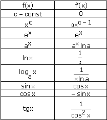 Определение: Производной функции f(x) (f'(x)) в точке x называется предел отношения приращения функции к приращению аргумента при приращении аргумента стремящемся к нулю: