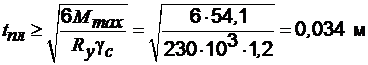 согласно [6, табл. 6]. По сортаменту принимается плита толщиной 36 мм,