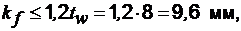 В соответствии с [1, табл. 38] при толщине плиты 36 мм минимальный катет шва равен