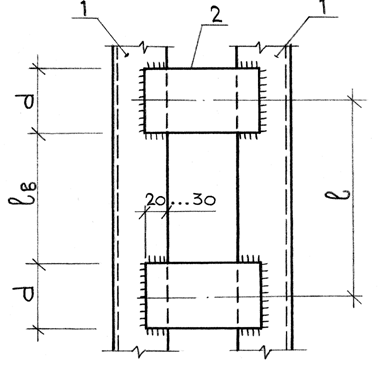 Толщина вертикального ребра, соединяющего ветви колонны, определяется расчетом на срез: