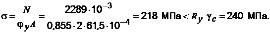 Проверка колонны на устойчивость относительно свободной оси Y: