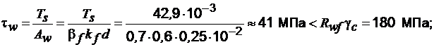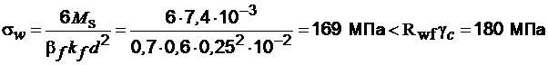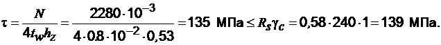 Вывод: для стенок швеллеров толщиной 8 мм условие на срез выполняется.