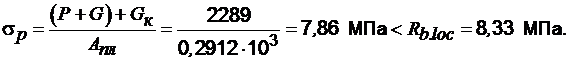 Проверяем достаточность размеров плиты в плане расчетом из условия смятия бетона под плитой. Назначаем класс бетона фундамента В12,5. Расчетное сопротивление бетона смятию при коэффициенте условия работы