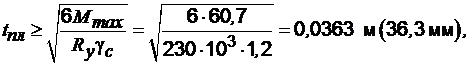 согласно [1, табл. 6]. По сортаменту принимается плита толщиной 40 мм.