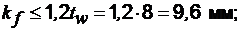 В соответствии с [1, табл. 38] при толщине плиты 40 мм минимальный катет шва равен