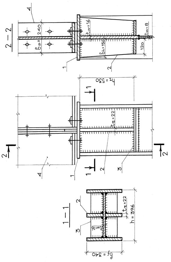 Снизу вертикальные ребра с целью предотвращения возможной потери устойчивости стенок стержня колонны обрамляются горизонтальным ребром толщиной 8 мм.