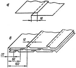 а - стык полотен внахлестку; б - смещение стыков в слоях