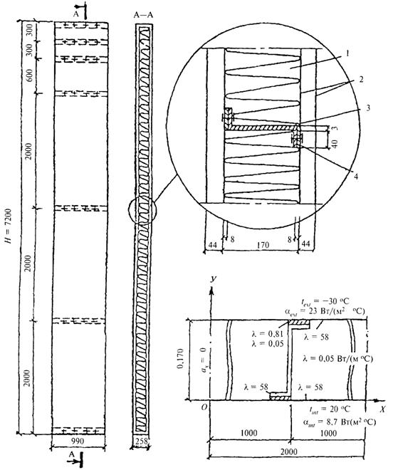 Температурное поле рассматриваемого участка двухмерно, так как распределение температуры во всех плоскостях, параллельных плоскости поперечного сечения конструкции, одинаково. Профили в основной части находятся на расстоянии 2 м один от другого, поэтому при расчете можно учесть ось симметрии посредине этого расстояния.