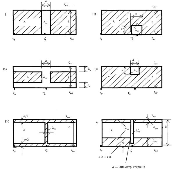 1 - Схемы теплопроводных включений в ограждающих конструкциях