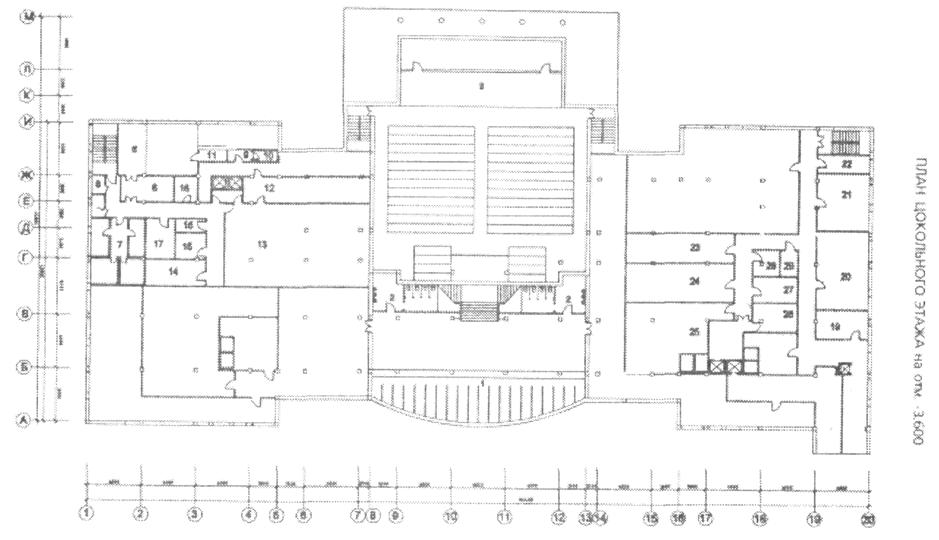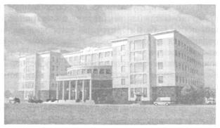 Пятиэтажное здание лечебного учреждения. Фасад, план и разрез здания приведены на рисунках Я.1 - Я.3. В цокольном этаже размещены конференц-зал, кухня и подсобные помещения. На первом этаже - входная группа с конференц-залом и залами для семинаров, приемное отделение и ресторан. На втором этаже - фойе с залами для семинаров, библиотека, административные помещения и отделение функциональной диагностики. На третьем этаже - лаборатория клеточных технологий, центр научно-исследовательских лабораторий, морфологическая лаборатория. На четвертом этаже - кардиохирургический стационар на 66 коек. На пятом этаже - операционный блок и реанимационное отделение. В техническом этаже под куполом - зал для текущих оперативных совещаний врачей и комната психологической разгрузки персонала.