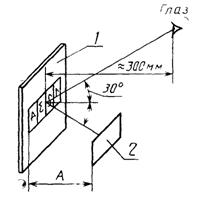 5.5. Образец устанавливают перед пластиной так, чтобы отражение сетки или рисунка можно было наблюдать на расстоянии примерно 300 мм под углом 30—45°.