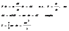 Кинетическая энергия мех. системы - это энергия мех. движения этой системы. Работа dA силы Fна пути, который тело прошло за время возрастания скорости от 0 до V, идёт на увеличение кинетической энергии dT тела, т. е. dA = dT. Используя 2 закон Ньютона