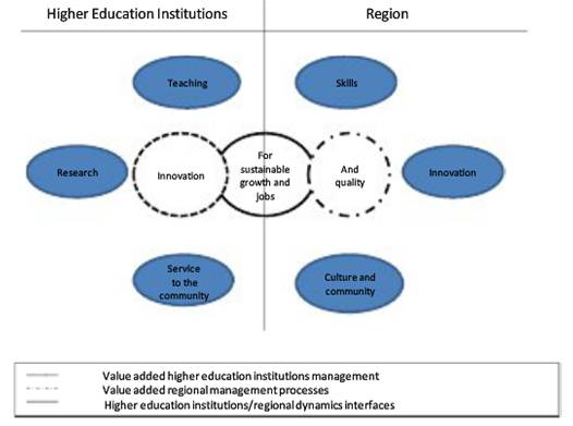В международной практике между вузами и регионами устанавливаются и развиваются отношения партнерства и взаимодействия на основе разделяемых взаимных интересов, главным образом, экономического характера. При этом вузы рассматриваются как ключевые источники экономического развития регионов через: вклад в развитие наукоемких производств, человеческого капитала, стимулирование развития новых форм предпринимательства, налоговых поступлений к бюджет регионов, а также через вклад в реализацию культурных инициатив в регионах и привлечения интереса к ним большей аудитории.