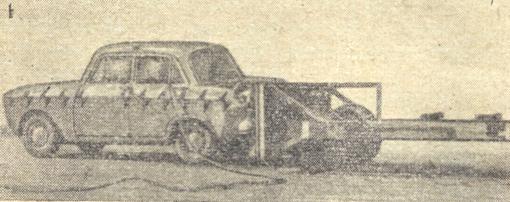 Как и в предыдущих случаях, при опыте применяют соответствующую измерительную и съемочную аппаратуру, обмеряют автомобиль и осматривают манекены до и после опыта.