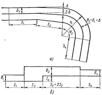 а - на повороте; б - при изменении ряда (перестановка)