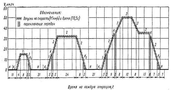 В настоящее время наибольшее распространение получили два цикла, по которым проводятся испытания на беговых барабанах. Так называемый европейский цикл, рекомендованный Европейской экономической комиссией (ЕЭК) ООН (правила № 15) и принятый в России(Отраслевой стандарт ОСТ 37.001.054-86)и в большинстве европейских стран (рисунок 28), и американский цикл, принятый в США. Соответственно установлены европейские нормы предельно допустимого содержания СО и СmНn и американские нормы предельно допустимого содержания СО, СmНn и NOx в отработавших газах.