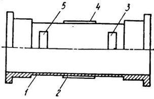 При частоте изменения давления в несколько герц применяют преобразователь в виде тонкостенной прямолинейной трубки, внутренний диаметр которой выбирают равным диаметру трубопровода, а толщину стенок - минимальной по условию прочности. Трубку выполняют сквозной (проточный измеритель) и в виде стакана (тупиковый измеритель). На чувствительный элемент 1 наклеивают тензорезисторы 2-5, которые измеряют деформацию стенок чувствительного элемента (рисунок 41).