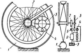 Рисунок 44 Схема «пятого колеса» с фотоэлектронным устройством для измерения пути и скорости