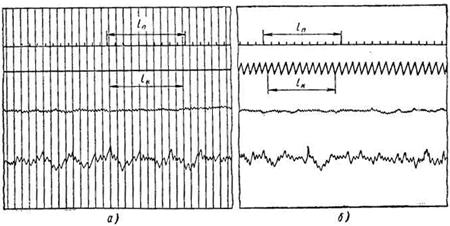 Генераторные отметчики времени имеют стабилизированный колебательный контур. Синусоидальные или прямоугольные импульсы поступают на регистрирующее устройство. Для записи на осциллограф используют отдельный гальванометр (пример записи показан на рисунке 47, б). Запись отметок времени на магнитограф обычно производится по отдельному каналу, но в некоторых случаях ее можно совместить с записью непрерывного медленно изменяющегося процесса. При обработке результатов оба вида информации разделяют с помощью фильтров.