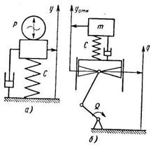 Рисунок 48 Схема колебательной системы с одной степенью свободы при различном возбуждении колебаний