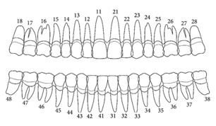 · Указание на схеме бланк-заказа вида конструкции (одиночные коронки, мостовидные протезы)