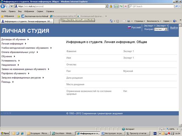 Рис.2. Главная страница сервиса СОП при переходе из ЛСС.