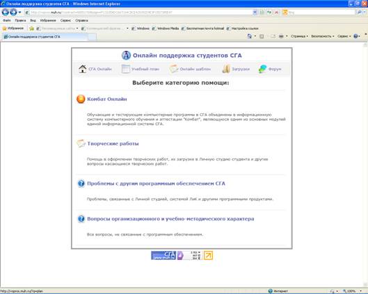Цель использования сервиса: Обеспечение возможности обучающимся получать в оперативном режиме необходимую помощь и консультации технического и методического характера по вопросам обучения в НАЧОУ ВПО СГА и администрирования образовательного процесса.