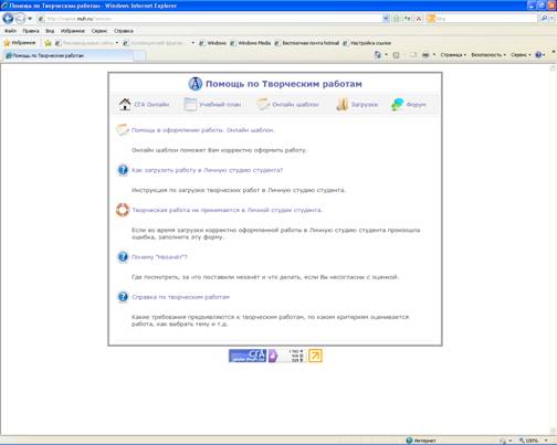- вопросы, проблемы, затруднения методического и технического характера, возникающие при оформлении и загрузке творческих студенческих работ;