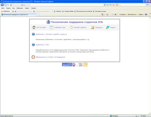 С осеннего семестра 2013/2014 уч. г. доступ обучающихся НАЧОУ ВПО СГА в Службу онлайн поддержки организован из Личной студии студента (ЛСС).