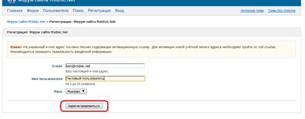 Рис.8 Ввод данных пользователя для регистрации на форуме СОП