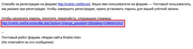 Рис.9 Пример письма пользователю при регистрации на Форуме СОП