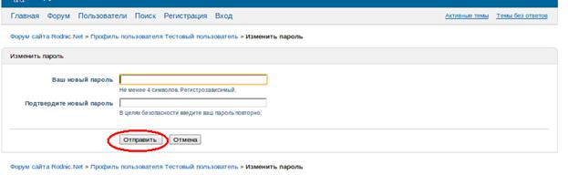 Придумайте пароль для входа на Форум, укажите его два раза, и нажмите кнопку «Отправить» Рис.10
