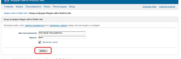 Рис.12 Вход зарегистрированного пользователя Форум СОП