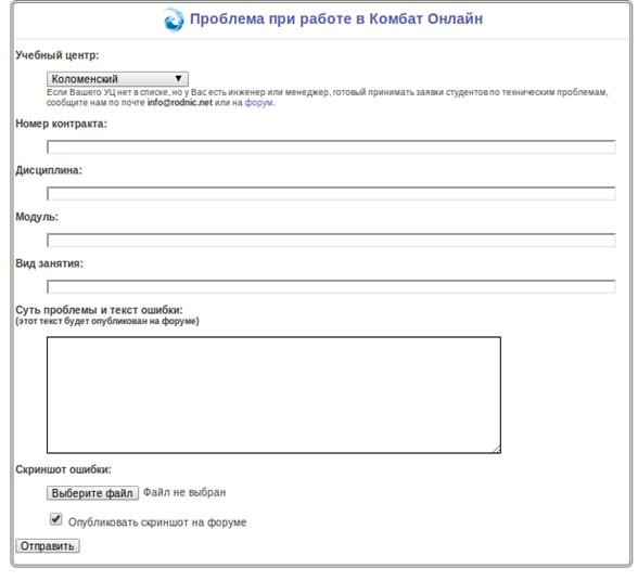 - вопросы, проблемы, затруднения методического и технического характера, возникающие при работе в ПО «Комбат Онлайн»;