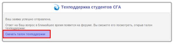 По данной проблеме автоматически будет создана заявка, открыта тема на форуме и сформирован талон поддержки. Обучающемуся необходимо скачайте талон.
