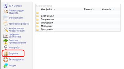 Рис. 17 Раздел «Загрузки» сайта СОП