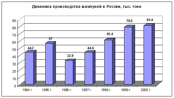 - рост потребления отечественных косметических продуктов. Если в начале 90-х годов доля импорта составляла 92%, то к концу 2000 г. она снизилась до 35-40%;
