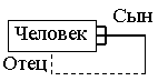 Лаконичной устной трактовкой изображенной диаграммы является следующая фраза: «Каждый ЧЕЛОВЕК приходится сыном одному и только одному ЧЕЛОВЕКУ; каждый ЧЕЛОВЕК может приходиться отцом для одного или более ЛЮДЕЙ. Атрибутом сущности является любая деталь, которая служит для уточнения, идентификации, классификации, числовой характеристики или выражения состояния сущности. Имена атрибутов заносятся в прямоугольник, изображающий сущность, под именем сущности и изображаются малыми буквами, возможно, с примерами. Пример: уникальным идентификатором сущности является атрибут, комбинация атрибутов, комбинация связей или комбинация связей и атрибутов, уникально отличающая любой экземпляр сущности от других экземпляров сущности того же типа.