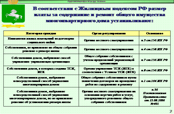 2. Размер платы за содержание и ремонт общего имущества многоквартирного жилого дома определяется в соответствии со следующими нормативными документами: