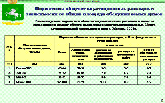 2 шаг - расчет общеэксплуатационных затрат, сначала определение нормативной величины определяемой с использованием рекомендуемых нормативов общеэксплуатационных расходов в плате за содержание и ремонт общего имущества в многоквартирном доме, Центр муниципальной экономики и права, Москва, 2008г.