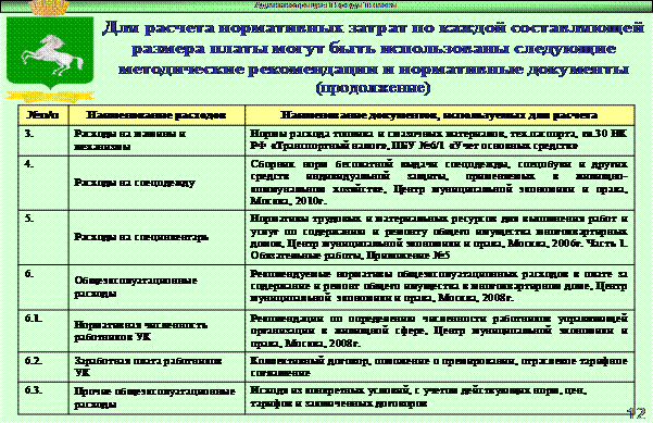 6. Для расчета затрат по каждой составляющей размера платы могут быть использованы следующие методические рекомендации и нормативные документы:
