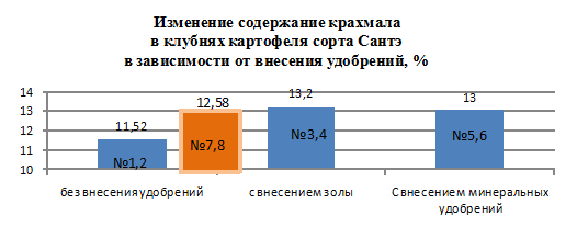 В сентябре урожай был убран, разложен в различные емкости и лабораторно установлено содержание крахмала в нем.